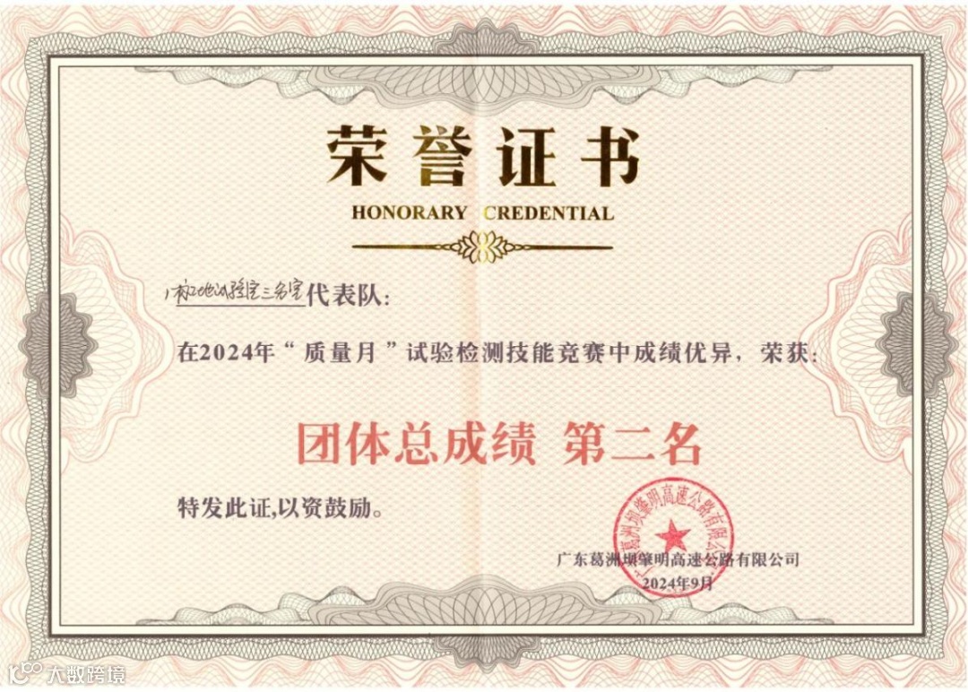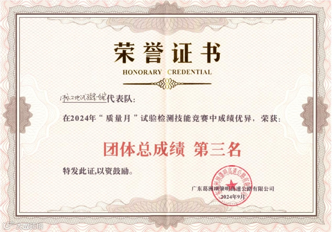 9月20日,广东肇明高速公路项目2024年“质量月”试验检测技能竞赛中,公司三支参赛队伍包揽团体总成绩第一名、第二名、第三名,苏凌凌获个人总成绩第二名。