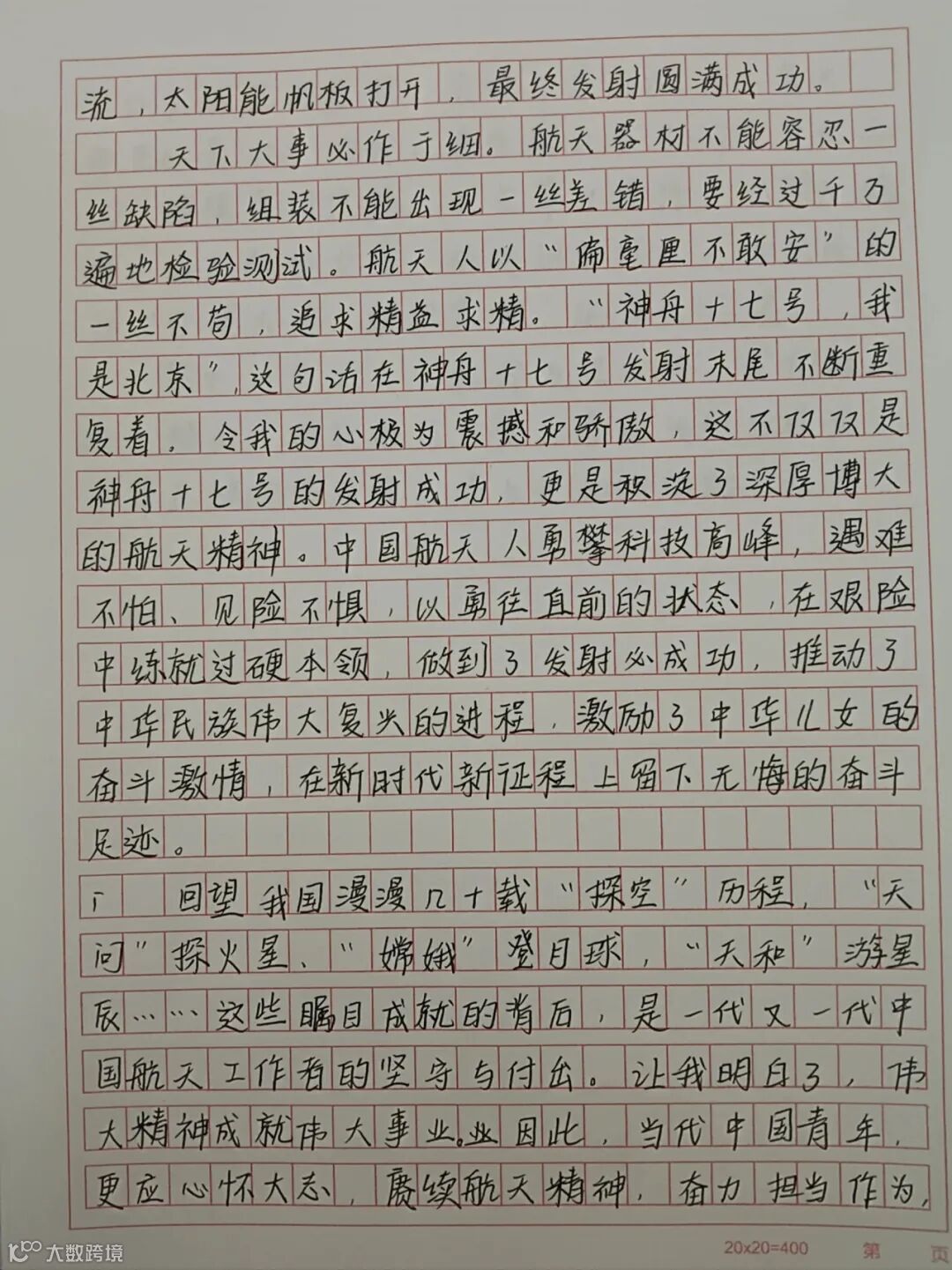 很荣幸,有这样一次机会,能够参观酒泉卫星发射中心,来到这里,除了有吸引大家的国之重器,最沁入人心的无疑是中国的航天精神!受《流浪地球》的影响,对中国航天精神充满了崇拜之情,今天来到这里,更是切身体会到航天精神的伟大。印象中,航天精神最具代表性的是数据的精准度,一个看似简简单单的航天器,是汇聚了多少次周密的计算才能顺利上天,这绝对是学校中解一个三角函数无法比拟的。航天精神的坚韧、严谨以及奉献的伟大精神,是极具正能量的,是值得中国现阶段青少年学习的,是值得蒸蒸日上的中国所推崇和骄傲的!