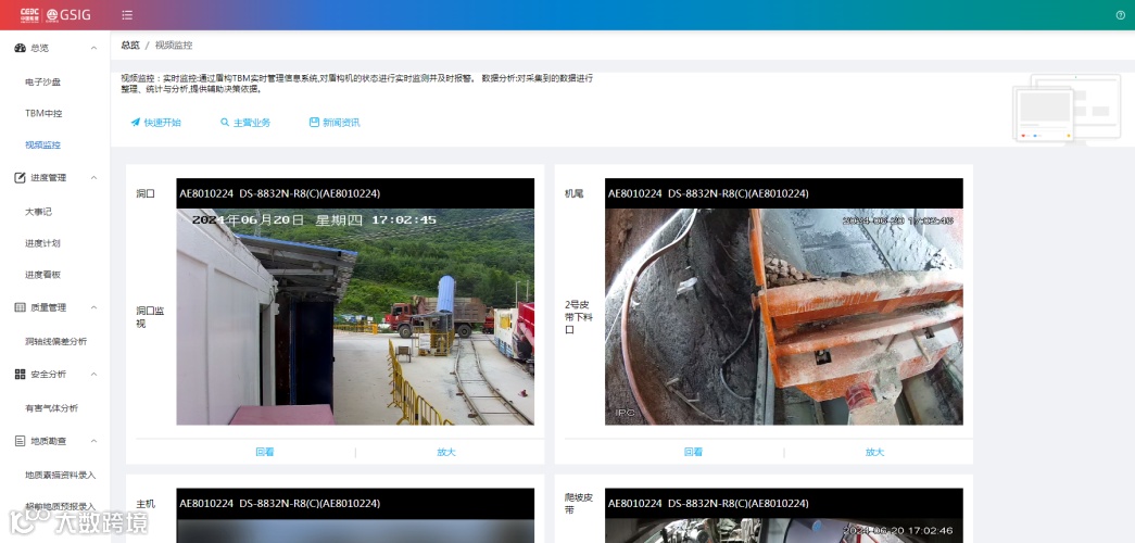 高效:通过物联万物,实时显示掘进里程、TBM设备状态、现场视频监控、项目管理情况等。