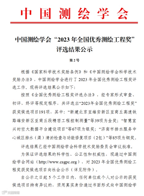 全国优秀测绘工程奖银奖
