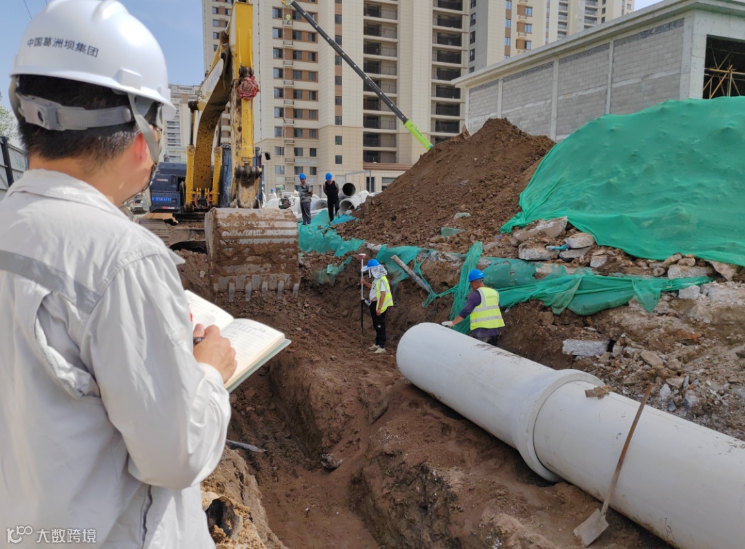 38度高温下,测绘人员穿梭于各个楼栋,为地库顶板小市政施工导航定位、对管沟开挖实施监测管理,确保各类施工管线精准对接,助力保定城改项目高质量履约。