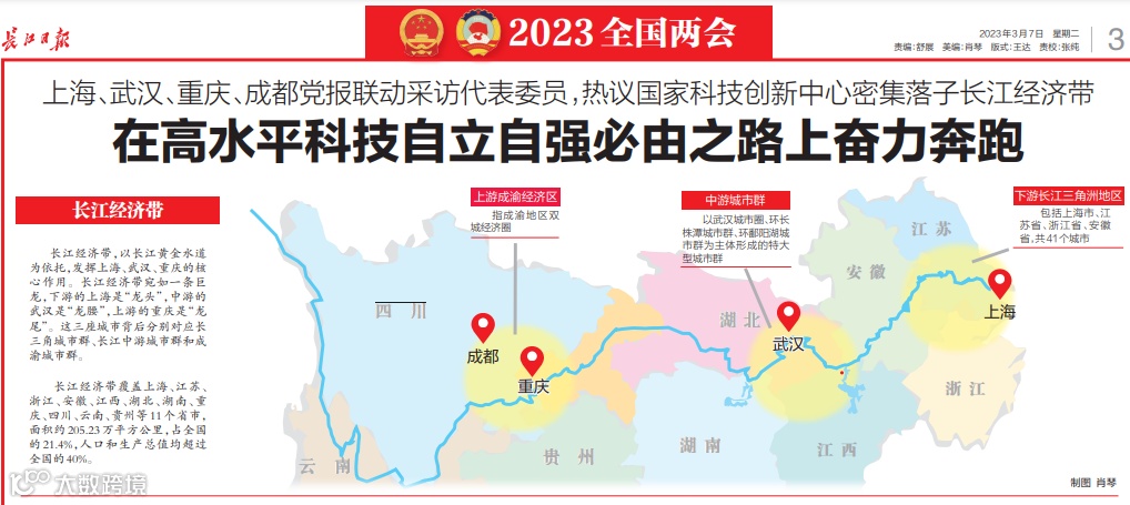 如何以科技创新为抓手,推动长江经济带高质量发展,服务于创新型国家建设?近日,在全国两会召开的春天里,长江日报与解放日报、重庆日报、成都日报一起,采访上海、湖北、四川、重庆代表委员,热议国家科技创新中心发展。