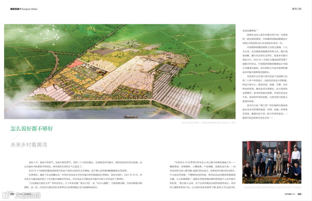 在公司的努力下,雄安新区雄县国家现代农业产业园已入选2022年国家现代农业产业园创建名单。公司乡村振兴工作团队已驻进黄湾村一年多,正在进行现代农业产业园核心区的二十多个单项设计,包括良好农业示范种植,种业开发中心,耕读学校,果蔬、甘薯、花卉种业研发等。