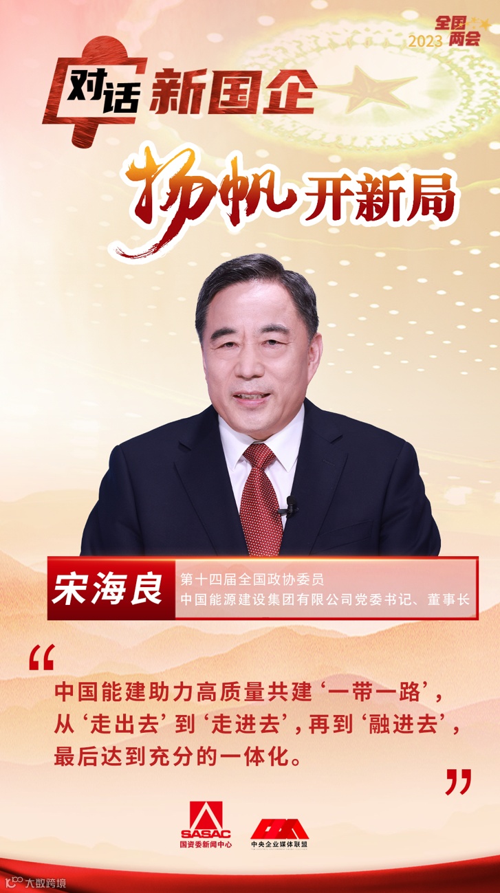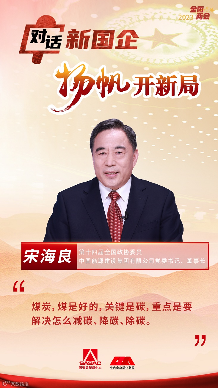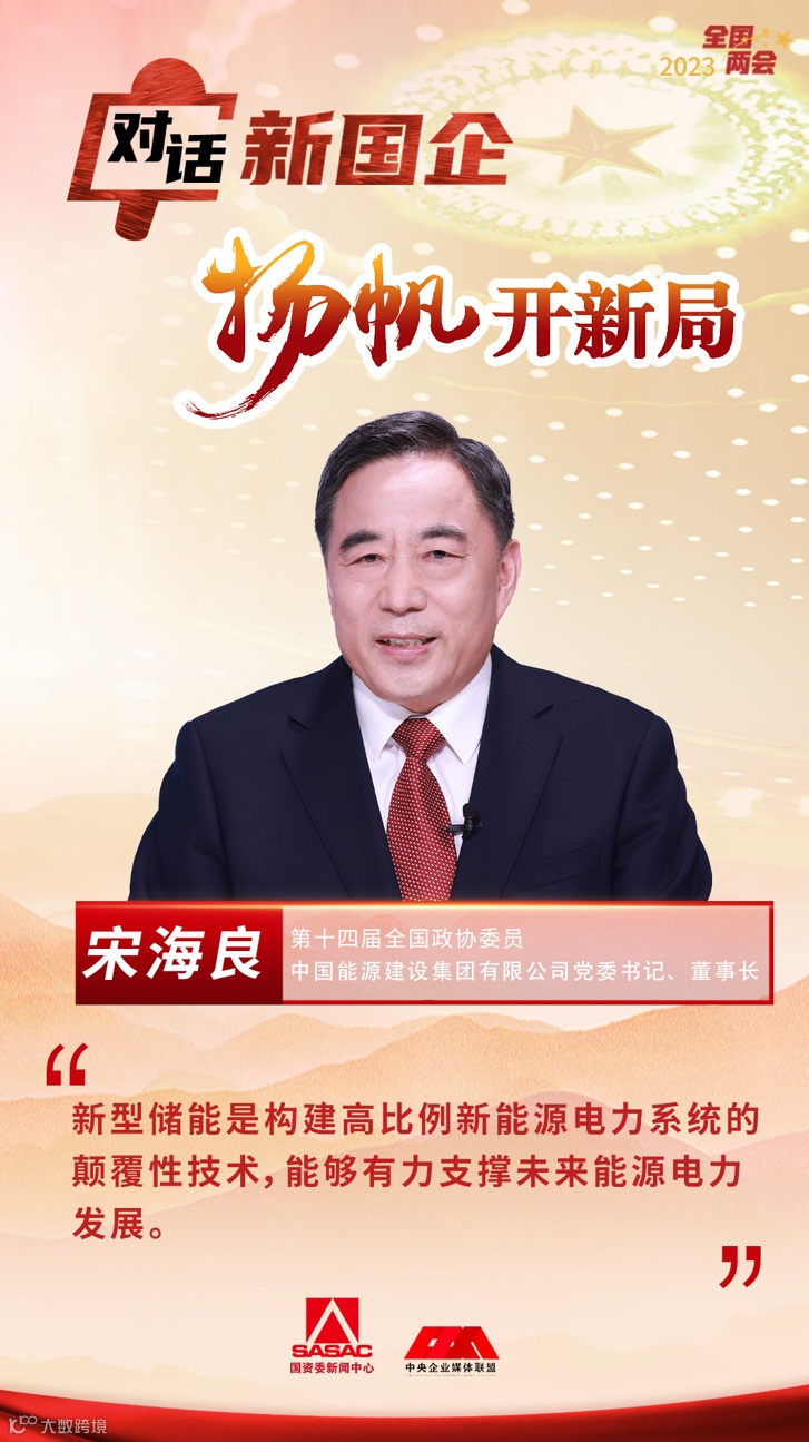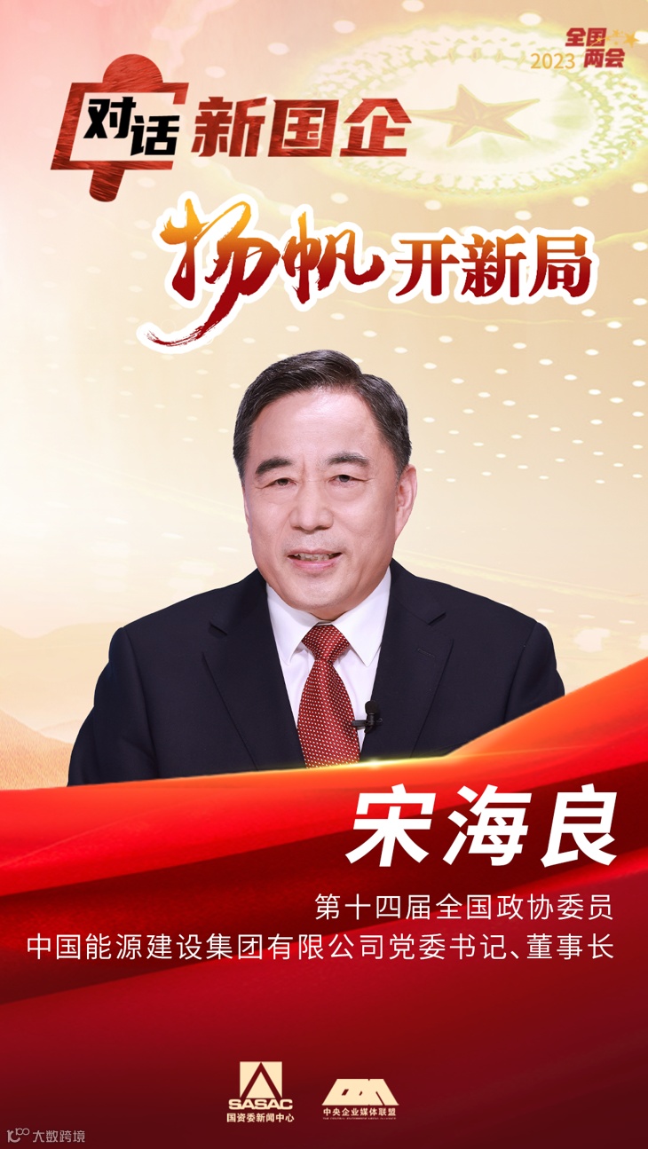 今天,第十四届全国政协委员,中国能源建设集团有限公司党委书记、董事长宋海良做客“对话新国企·扬帆开新局”系列访谈节目,畅谈新能源、新基建、新产业。