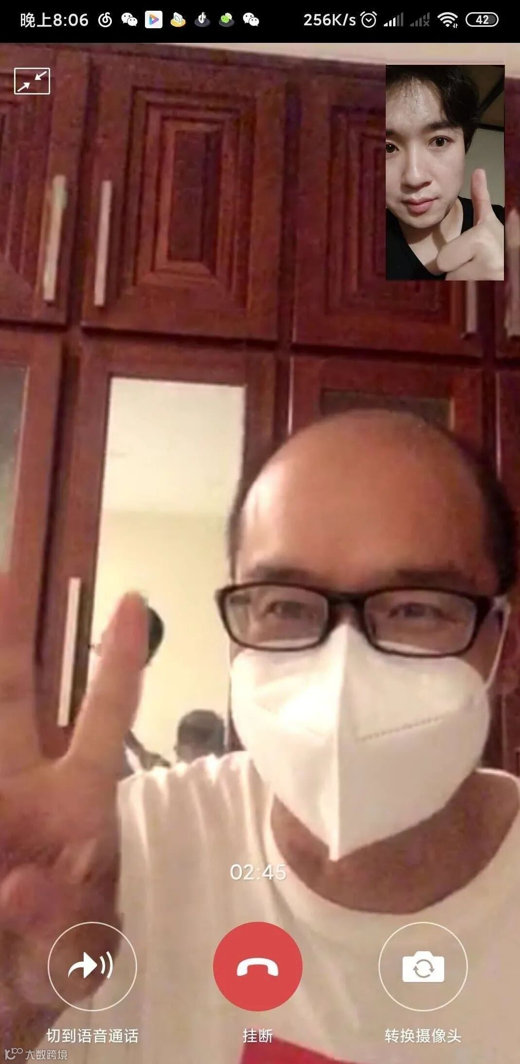 虞博涵与康复中的李师傅视频连线
