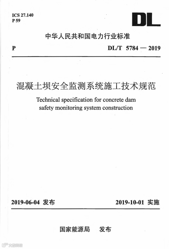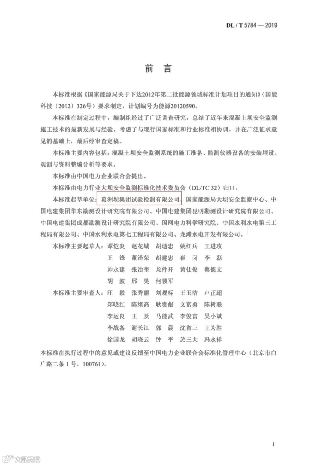 近日,公司所属试验检测公司历时多年主编的电力行业标准《混凝土坝安全监测系统施工技术规范》(以下简称“标准”)由国家能源局正式出版发行,编号为DL/T 5784-2019。