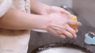 第一步,双手手心相互搓洗(双手合十搓五下)。