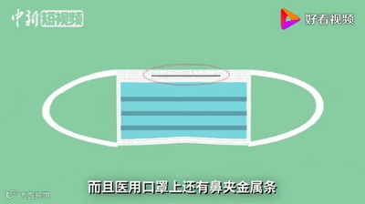(2)正对脸部的应该是医用口罩的反面,也就是颜色比较浅的一面,除此之外,要注意带有金属条的部分应该在口罩的上方,不要戴反了。