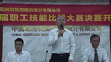 董事长、党委书记宋拥军宣布:“中国葛洲坝集团勘测设计有限公司第一届职工技能比武大赛决赛正式开幕。”