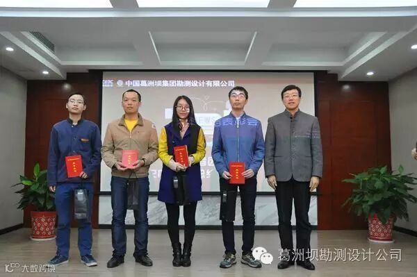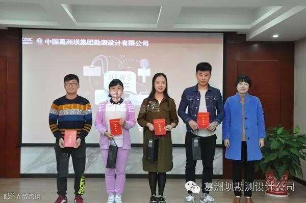 试验检测分团卢江(左一)、测绘分团孙志强、设计院分团刘伟、项目管理分团赵威以加入记者团一年发稿最多荣获“最佳新人奖”。(孙志强、刘伟、赵威因远在一线,未能参加本次表彰会。)