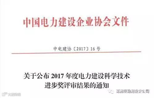 近日,中国电力建设企业协会公布2017年度电力建设科学技术奖评审结果,由公司所属测绘公司申报的大尺寸水轮发电机组安装精密测量技术获2017年度电力建设科学技术进步奖一等奖,展示了公司在精密测量领域的技术实力和科研能力。