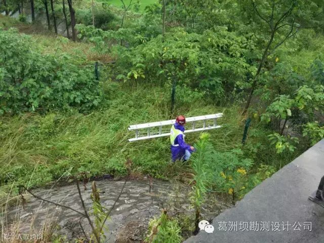 他们到达了第3个目标桥梁。这个桥梁的特点是:桥台坐落在一个坡度约45°,高约10m的斜坡上。想要检测桥台和桥台上的支座,需要爬上这个斜坡,然后在斜坡上工作。