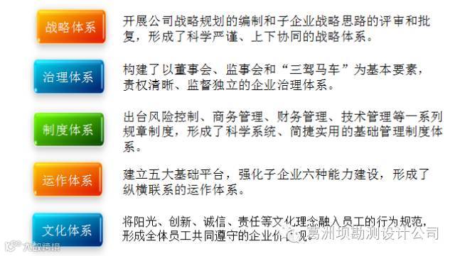 参照集团的治理体系,结合公司自身特点,摸索一套行之有效的治理体系,实现权力制衡和高效运作,促进成员企业的自我约束、自我发展。