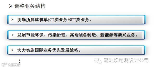 八大板块齐头并进、协调发展的业务格局。今年,各业务板块要抢抓机遇,实现快速发展。勘测设计公司作为建筑板块成员单位之一,我们要做到: