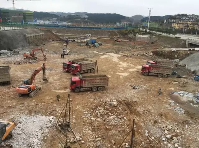 下图是服务外包基地工地,该基地紧紧落座于海关大楼东边,正处于基础开挖阶段。只见工地上,挖掘机、装载机、自卸车、地质钻机都在紧张作业中,一派热火朝天的景象。预计到本月底,该基础开挖完成,就将移交葛洲坝股份有限公司负责其主体工程。