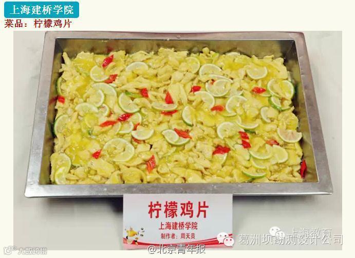 图四:柠檬鸡片。这道菜很好地继承了第九大菜系的优良传统,于菜中找肉,哦,不,是于柠檬中找鸡肉。又到了考验打菜大妈准头的时候了。