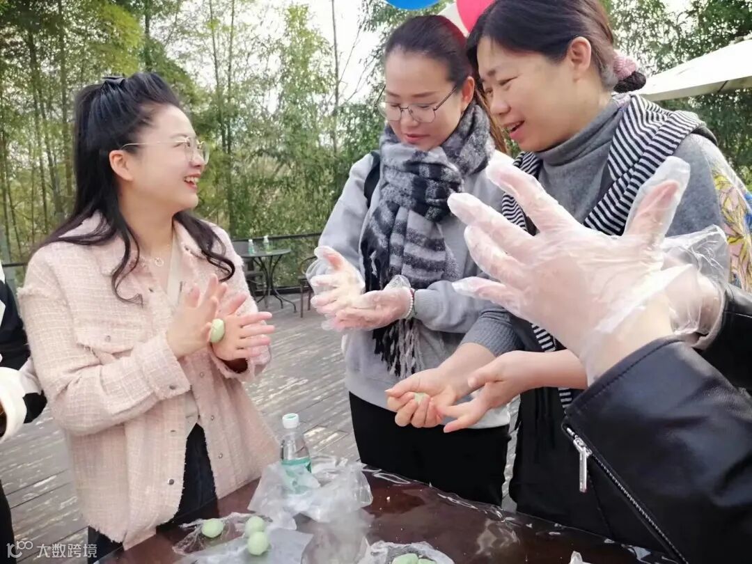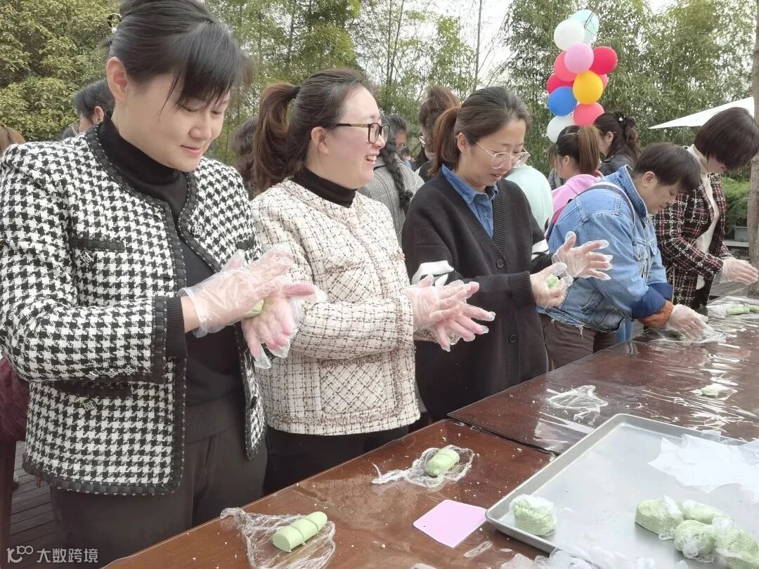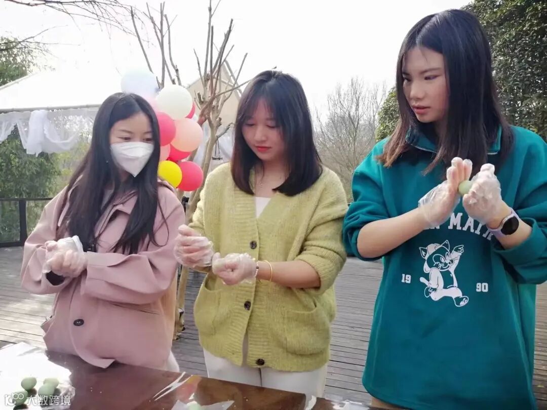 在万物复苏、艾青泛绿的阳春三月,正是制作青团的好时节。大家在培训老师的带领下,一起动手制作青团。艾草芬芳,春天的气息铺面而至,细腻的糯米粉在手心揉搓回旋,触感Q弹十足,将馅料包入,再放进蒸笼里,不一会儿,令人垂涎欲滴的青团就制作完成了。碧玉团圆满屉香,素舀柔艾捣砧忙,看着自己亲手打造的作品,愉悦的心情展现在脸上。