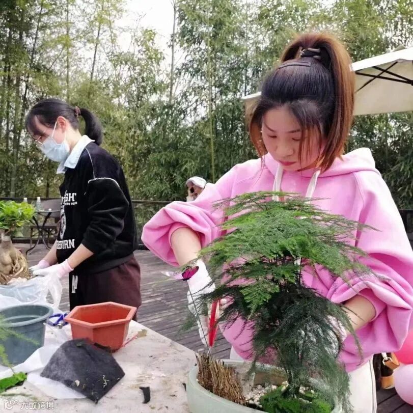 为这美好的春天再添一份绿意,在花艺师的指导下,大家用灵巧的双手进行铺土、种植、固根、搭配装饰,不一会儿,一盆盆精致典雅的文竹盆栽映入眼帘,小小一份盆栽,盛满了对生活的热爱,每位女职工都收获了一份属于自己的“节日礼物”。