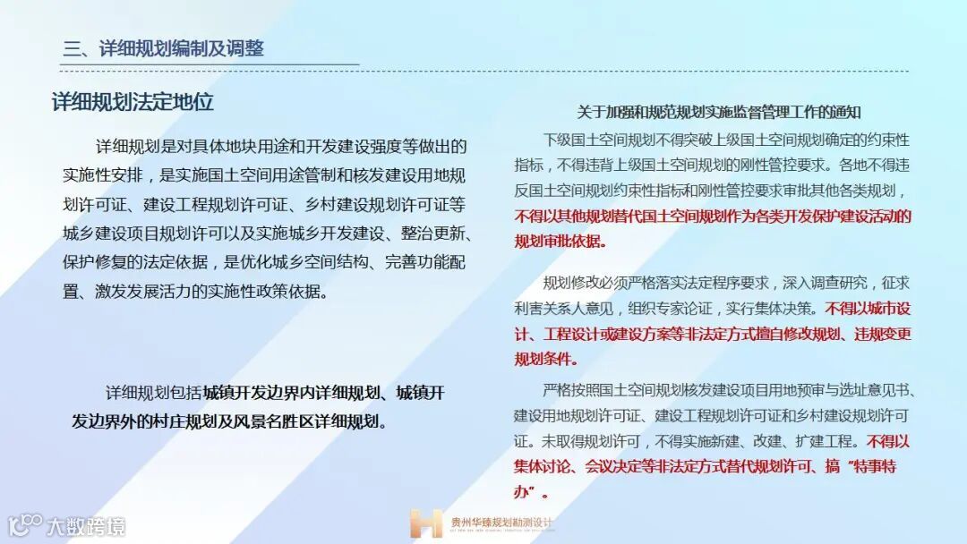 结合我司编制的《玉屏经济开发区国土空间控制性详细规划》,分享人对详细规划编制审批程序、调整程序、编制内容等进行了分享。同时对城镇开发边界优化调整程序、生态保护红线有限人为活动、工业用地管控要求等内容进行了讲解。