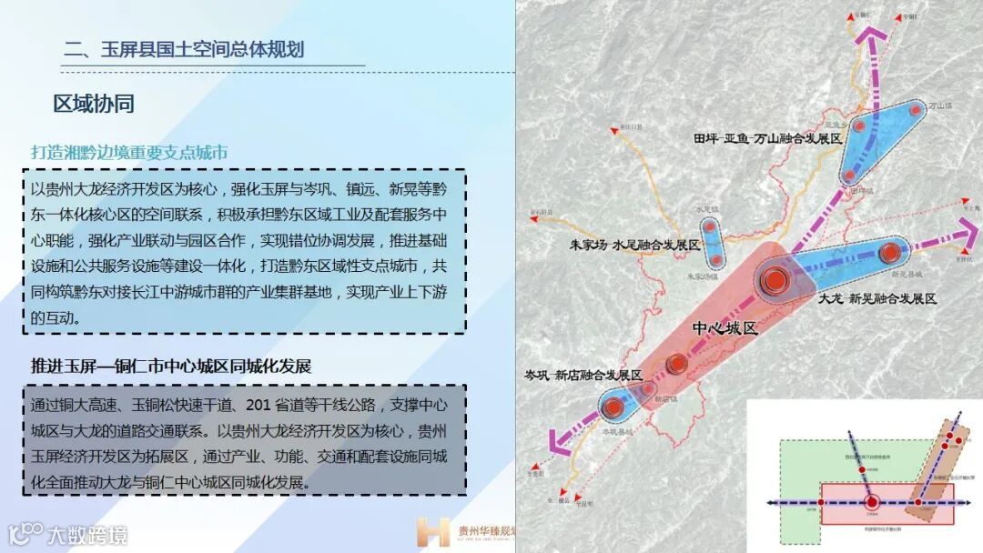 以我司参与编制的《玉屏侗族自治县国土空间总体规划(2021-2035年》为例,分享人结合《贵州省县级国土空间总体规划编制技术指南》,以现状特征、存在问题、双评价为基础,对城镇性质、总体格局、农业空间、城镇布局、城区空间结构、区域协同等内容进行深入解读。