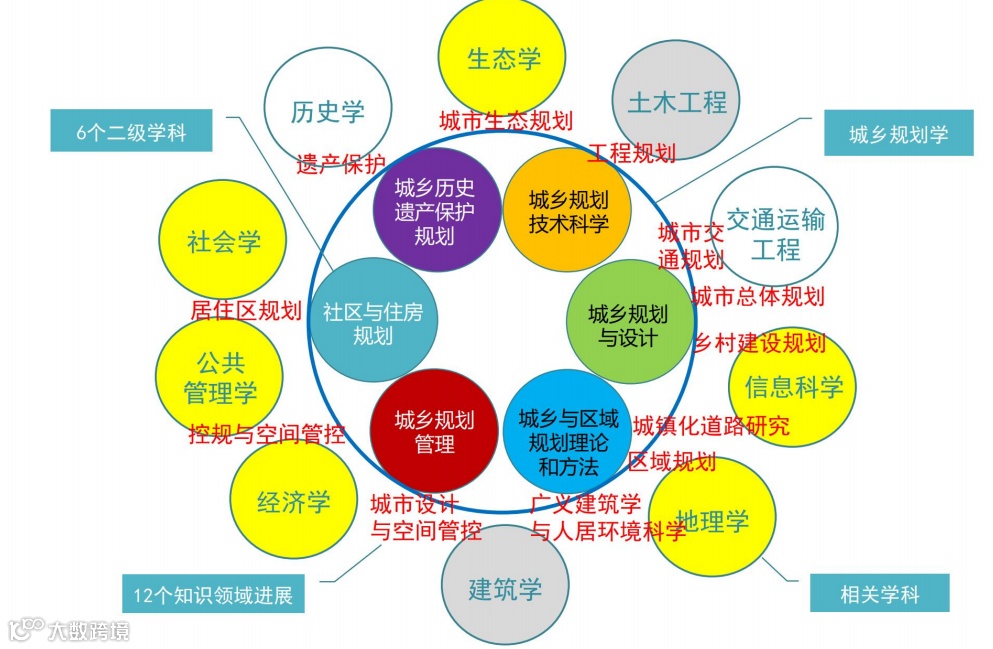 2011年城乡规划一级学科正式确立。二级学科包括城乡与区域规划理论和方法、城乡规划与设计、城乡规划技术科学、社区与住房规划、城乡历史遗产保护规划、城乡规划管理等。六个二级学科与12个知识领域交叉,各学科领域之间形成互动,相互促进。城乡规划是一门实践的学科,要回应不同时期的国家发展需要,更要解决各个阶段的城市现实问题。