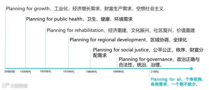 分享围绕城乡规划学不同发展阶段的历史背景和发展历程展开,从古代中国城乡规划的“学在官府”传统下的知识本体,至建国初期(1949—1965年),以生产力布局、重点工业项目选址为重点,建立社会主义工业化体系;再到改革开放时期(1978—2011年),国家市场化改革不断深入,规划实践需更灵活地应对市场变化,到新时期(2012年至今)以来,京津冀协同发展、长三角一体化发展、粤港澳大湾区、长江经济带、黄河流域发展等国家重大战略出台,北京副中心、雄安新区等规划落地,预示着规划事业新的开端。
