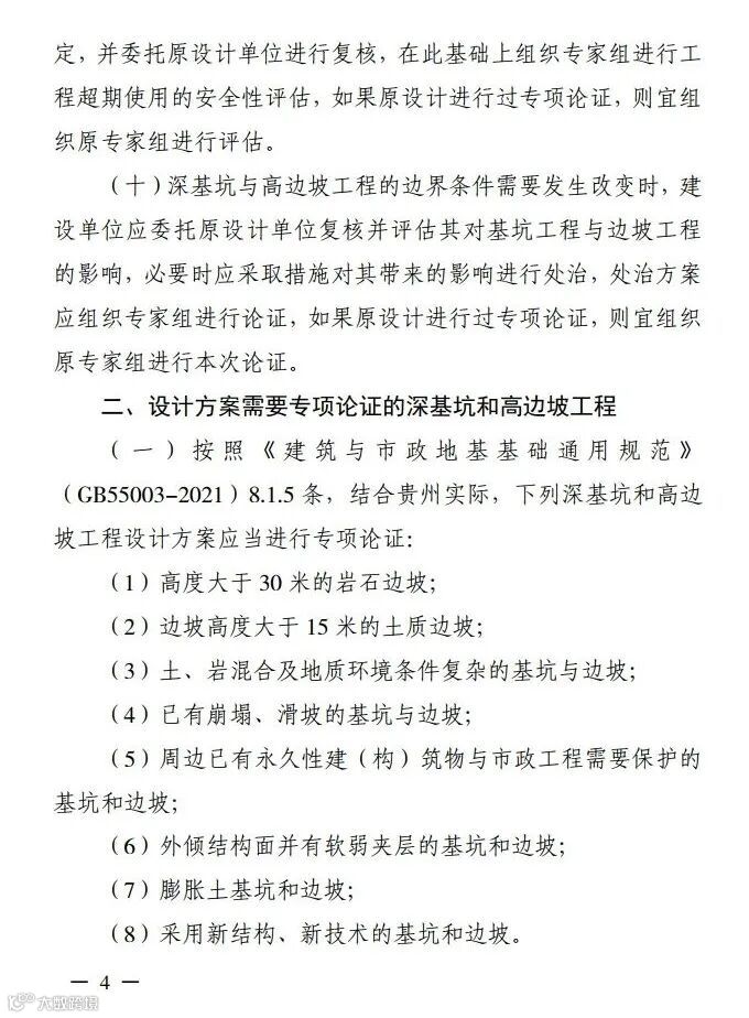 按 照 《 建 筑 与 市 政 地 基 础 通 用 规 范 》(GB503-201)8.15 条,结合贵州实际,下列深基坑和高边坡工程设计方案应当进行专项论证: