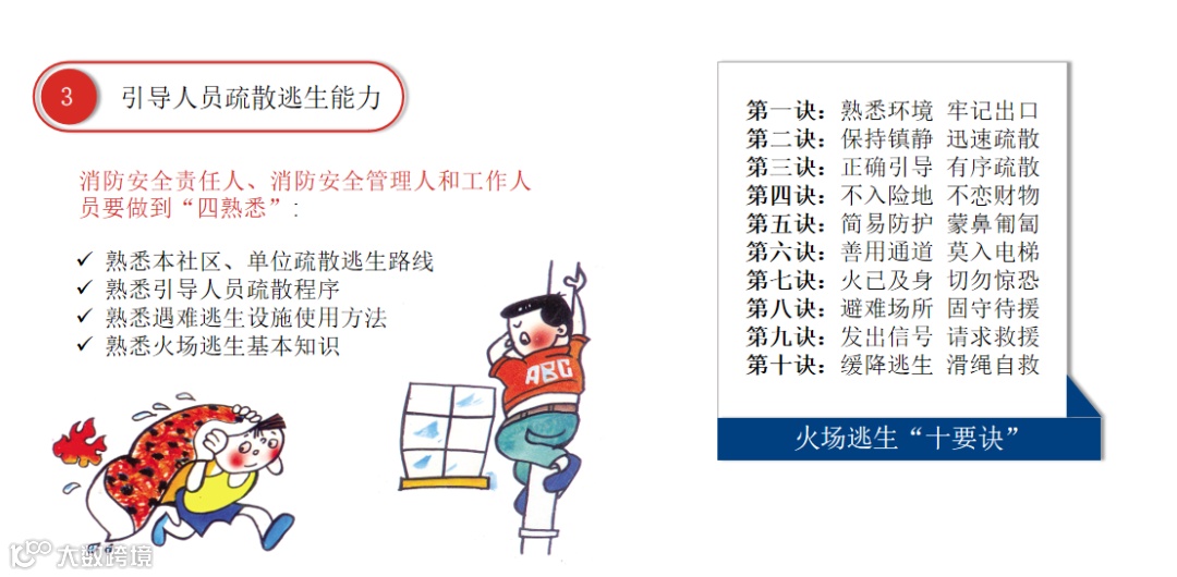 陈海堂参谋通过实际案例向我们详细介绍了火灾的基本常识、4个能力、6个隐患以及火灾发生时的逃生要诀等。