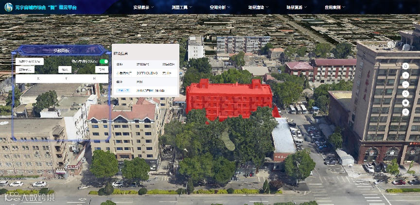 系统该设计目的是打破不同格式数据需不同软件打开的窘境及各专业数据不能及时共享的困境,实现在线浏览各类三维模数字模型,同时能够对建筑模型信息、POI数据等信息进行查询。系统主要包括实景展示、测量工具、空间分析、场景渲染、场景漫游等主要功能。