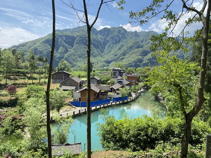 绕过神龙潭,傍山而起,山腰有处观景台,俯身眺望下的云舍才叫绝美,寨子里几乎都是二三层的木楼,古朴自然,小溪里村民洗衣洗菜,一大群鸭子也在水里扑腾不停,房屋周边的院地,不同种类的农家菜也在竞相生长着,拔地而起的古树,点缀着村庄,绿色的湖泊,映衬着原木房子,远山如黛又白云缭绕,俨然一幅山川秀丽、宁静祥和的优美画卷。