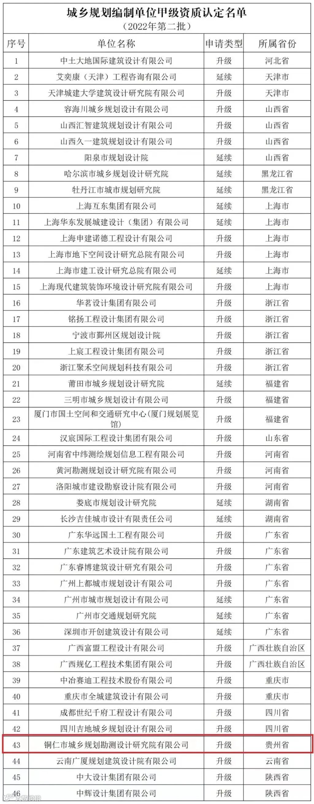 2022年第二批城乡规划编制单位甲级资质认定名单