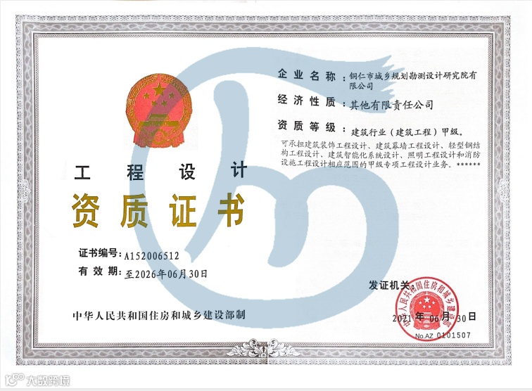 公司现有“一甲九乙三丙两施工一劳务”资质,即建筑工程甲级资质;测绘、规划、风景园林专项、市政道路、市政给水、市政排水、岩土工程、城镇燃气、公共交通乙级资质;土规、咨询和公路丙级资质;建筑工程施工总承包和市政公用工程施工总承包资质;工程勘察劳务资质。