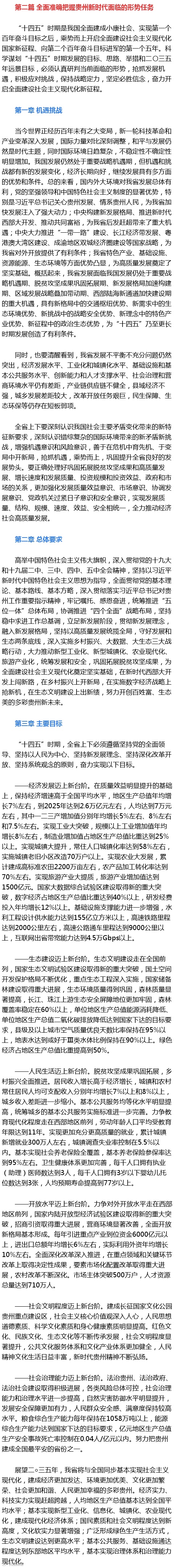 贵州省国民经济和社会发展第十四个五年规划和二〇三五年远景目标纲要