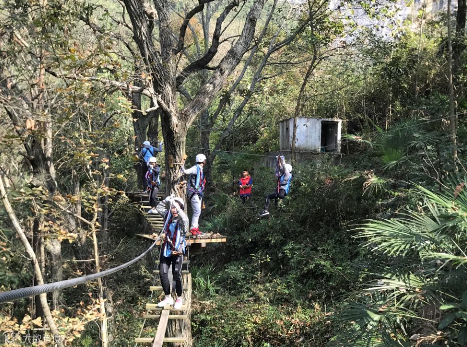 团建活动设置了“丛林飞跃”、“石磨坊体验”、“步步高升”等团队体验游戏,大家团结协作,勇于尝试,越战越勇。
