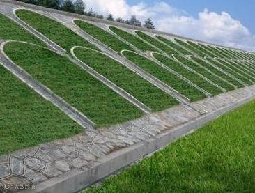 4、坡顶有占地面积小,高大的建筑物(如高压电线塔)时,应设置地面保护措施。