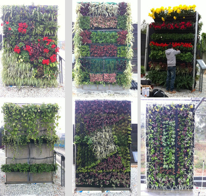 传统的垂直绿化形式主要依赖于藤蔓植物的攀爬、吸附、缠绕特性,植物选择范围较窄。新型垂直绿化系统通过板块、箱体、布毡等载体的运用,可以更有效的承托、固定植物,大大扩展了垂直绿化植物的选择范围。