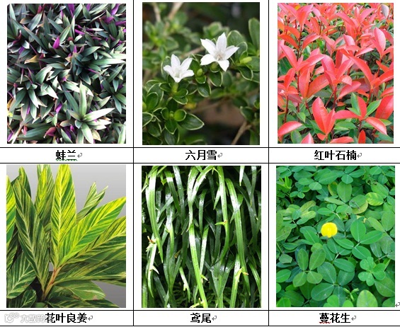(2)阴生环境适用植物:光照条件较差的地带,适宜选择喜阴、中性和耐阴的植物种类。