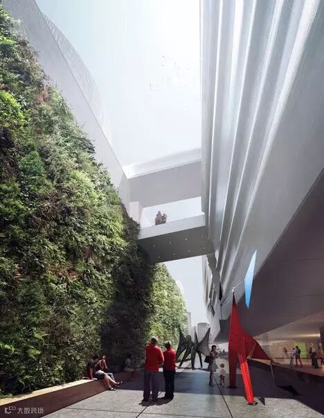 美国旧金山现代艺术馆建筑内部的一座大型的垂直花园,将成为旧金山最大的公共天然植被生长的绿墙。