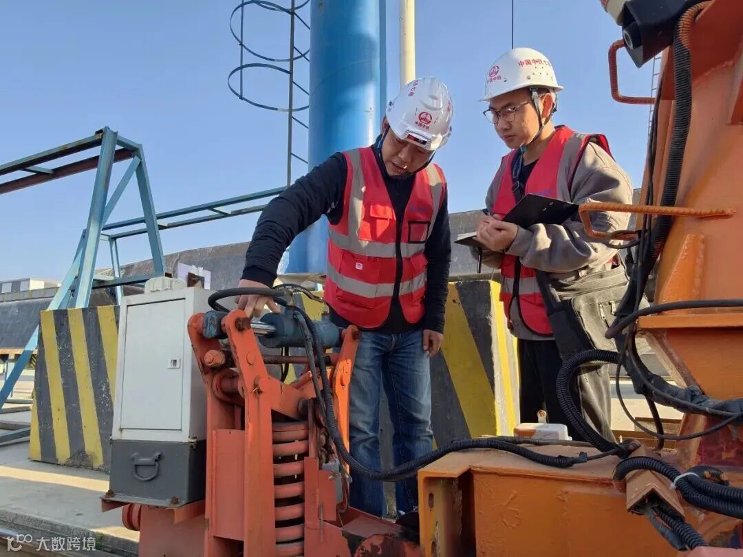 “春天气候多变,风大。这液压夹轨器要是夹不住轨道,一旦起风,龙门吊溜车,那后果不堪设想。”老张一边拍着手上的灰,一边给小戚上着现场教学课。小戚的笔记本上,又多了一排重重划下红线的笔记。