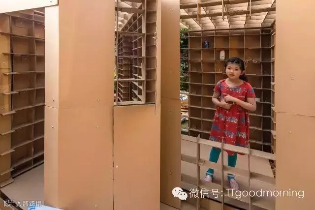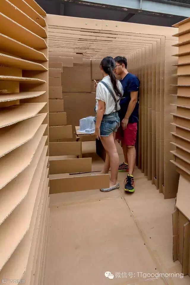 这一方案完全通过纸板的咬合,创造出了一系列的空间。