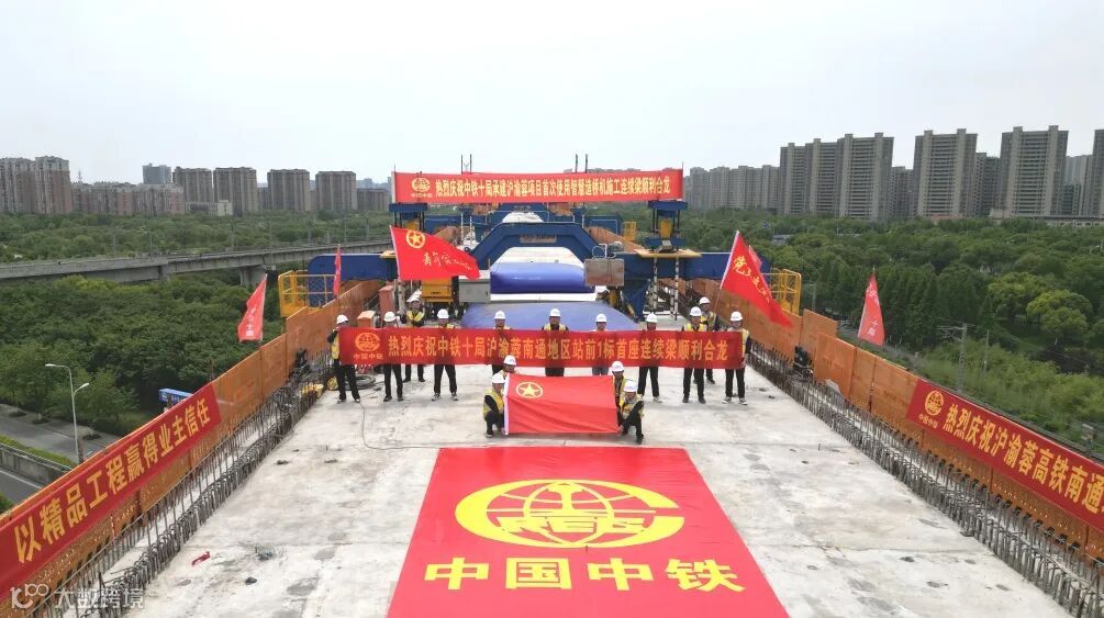 ▲沪渝蓉高铁南通地区站前1标箱梁架设任务圆满完成