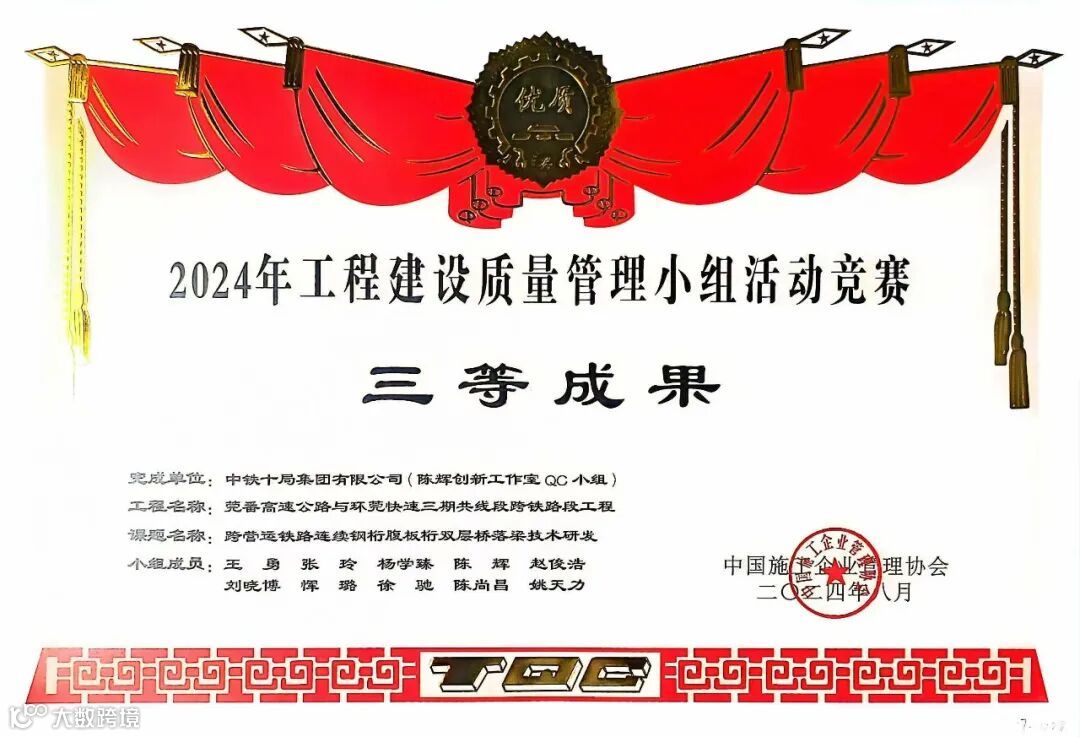 ▲莞番高速项目课题荣获中施协2024年工程建设质量管理小组活动竞赛三等奖