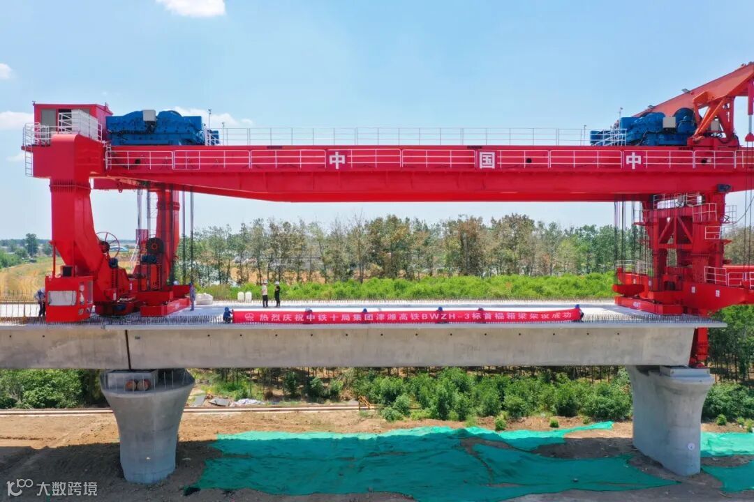 ▲津潍高铁代建段3标首榀箱梁成功架设