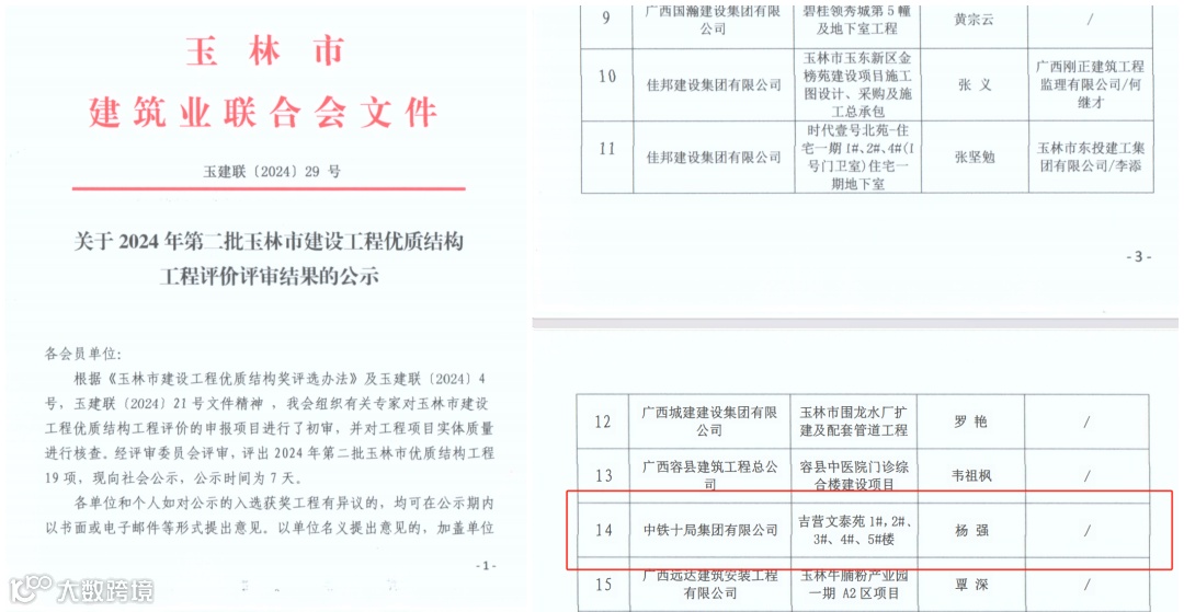 ▲吉营文泰苑项目荣获玉林市建设工程优质结构奖