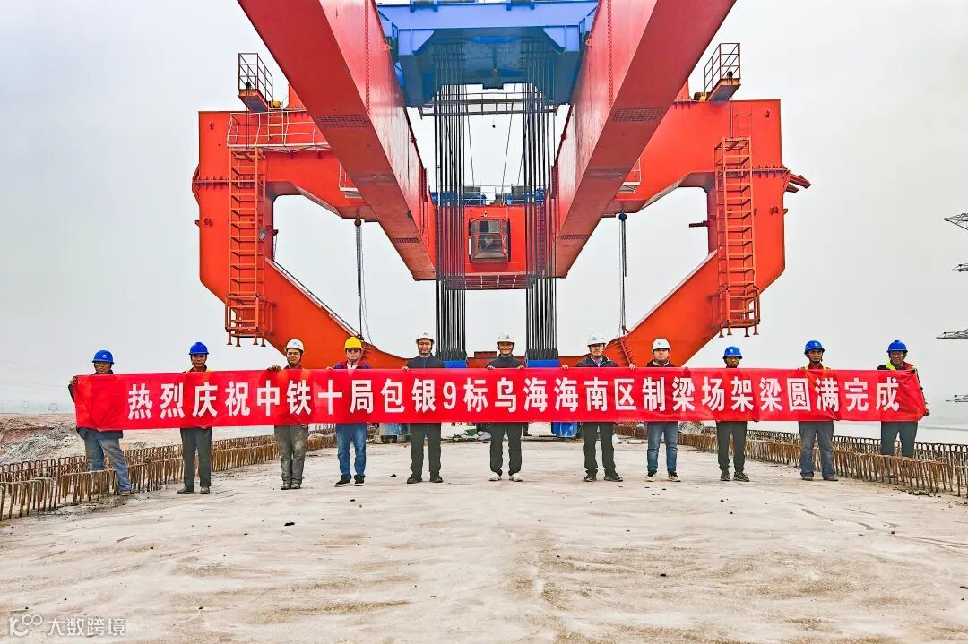 9月16日,在乌海市海南区拉僧庙镇的跨黄公铁路特大桥施工现场,随着长约32.6米、重约714.8吨的标准预制双线整孔箱梁被900吨级下导梁式架桥机缓缓“放”在5号和6号墩台基座上,跨黄公铁路特大桥顺利贯通,同时也标志着包银高铁项目9标段箱梁架设任务圆满完成。
