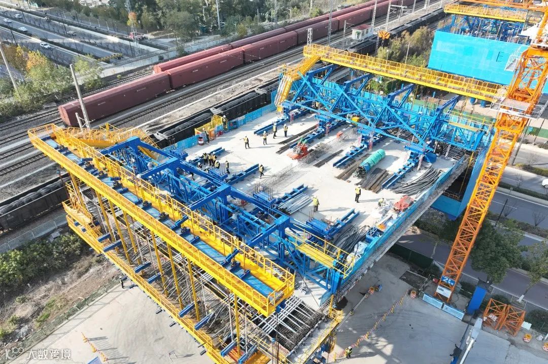 14日下午,参会人员前往南京建宁西路项目部的挂篮施工场地、项目智控中心以及南京项目部的钢板叠合梁施工现场进行观摩。