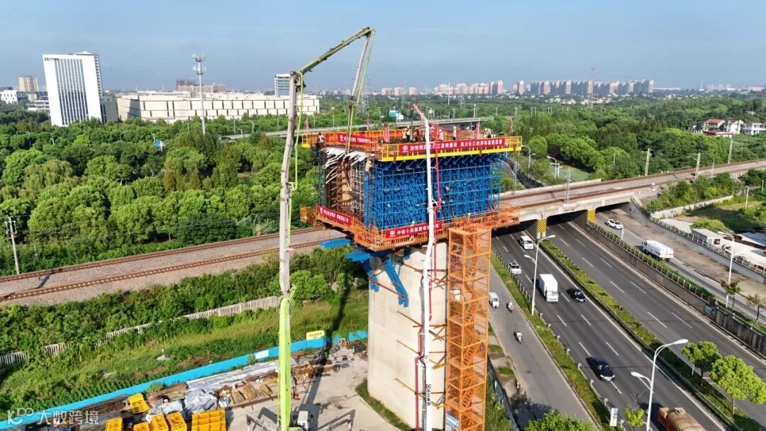 本次浇筑施工的连续梁顶宽12.2m、高7.58m、长12m,混凝土总计458.29方,一次浇筑成型,为代建1标首个浇筑的连续梁“0号块”。浇筑完成后,即可进行智慧造桥机地面拼装、安装、调试及悬臂段施工。