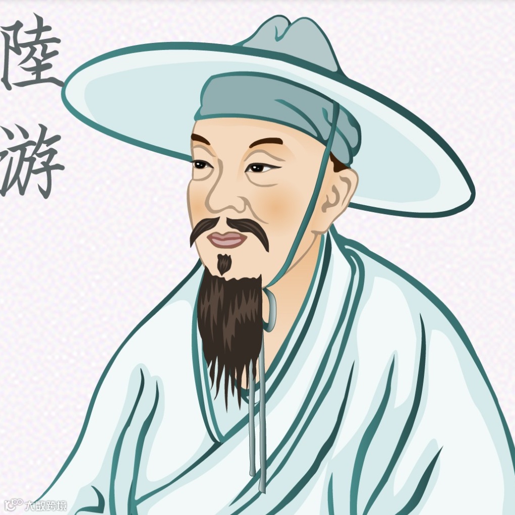 陆游,字务观,号放翁,越州山阴(今绍兴)人,南宋文学家、史学家、爱国诗人。少年时深受家庭爱国思想的熏陶。嘉泰二年,宋宁宗诏陆游入京,主持编修孝宗、光宗《两朝实录》和《三朝史》,官至宝章阁待制。陆游一生笔耕不辍,诗词文俱有很高的成就,他的诗语言平易晓畅、章法整饬谨严,兼具李白的雄奇奔放与杜甫的沉郁悲凉,尤以饱含爱国热情对后世影响深远。