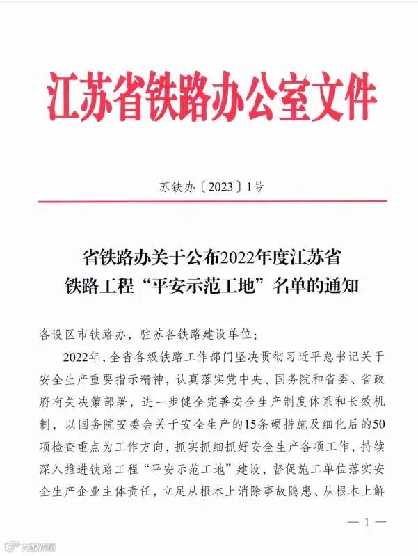 付出终结硕果。项目部激发安全生产真抓实干的精神,不断发挥锐意进取的积极性、主动性和创造性,深入推进铁路工程“平安示范工地”建设,严格落实安全生产主体责任,从根本上消除事故隐患,被江苏省铁路办公室评为2022年度江苏省铁路工程“平安示范工地”,有力地推动了铁路建设安全形势稳定向好。