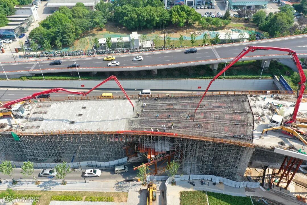 该工程集合了所有市政道路工程类型,涉及到雨污水、自来水、燃气、强弱电、电力等10种管线迁改和下地。晓庄互通立交的复杂程度还不仅于此,除了地上三层高架,工程还与南京地铁1号线北延段及7号线晓庄站换乘空间,多处交叉施工和区间段共建。